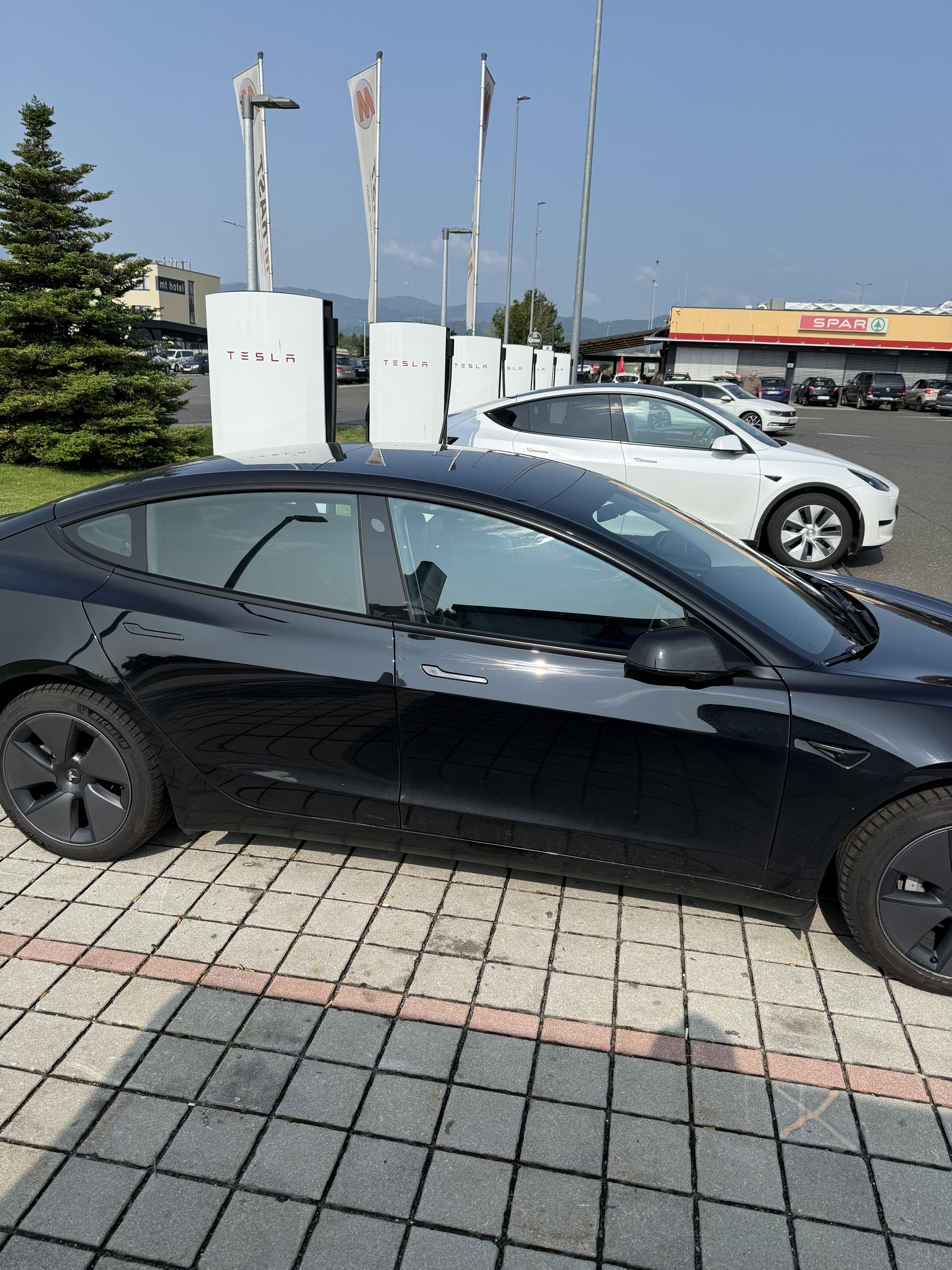 B. Aktualnie pod hotelem są dwie ładowarki. Obydwie zajęte przez Tesle