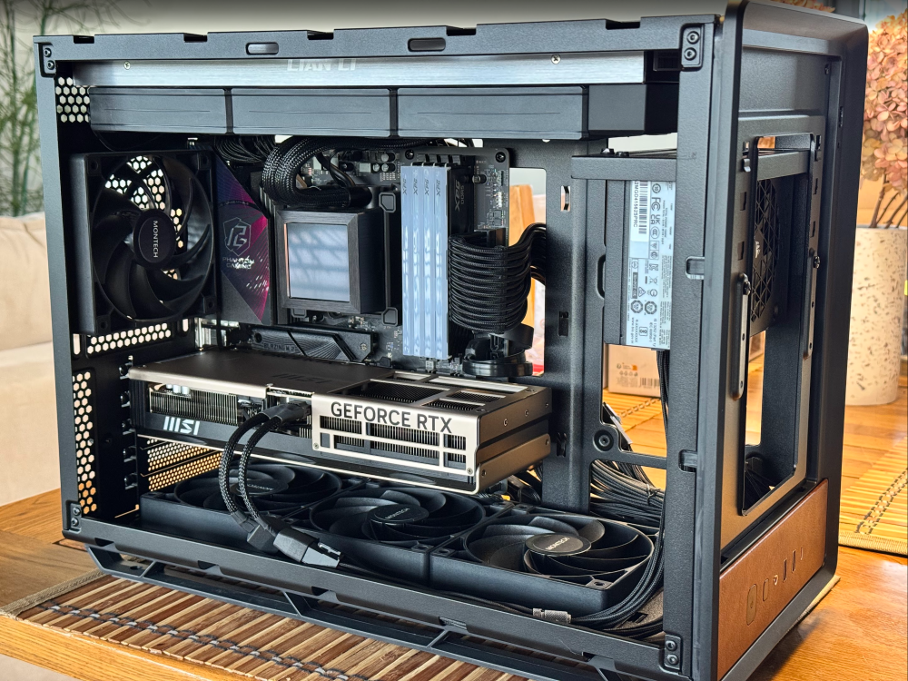 Zasilacz można zostawić przy zmianie obudowy, po prostu podłączysz kartę przez przejściówkę dołączoną do karty. W tej małej budzie byłby to problem z uwagi na mało miejsca na poprowadzenie kabla, ale tutaj spokojnie można użyć adaptera.