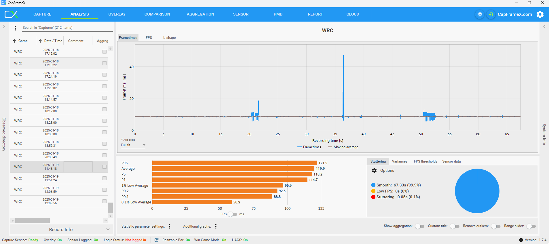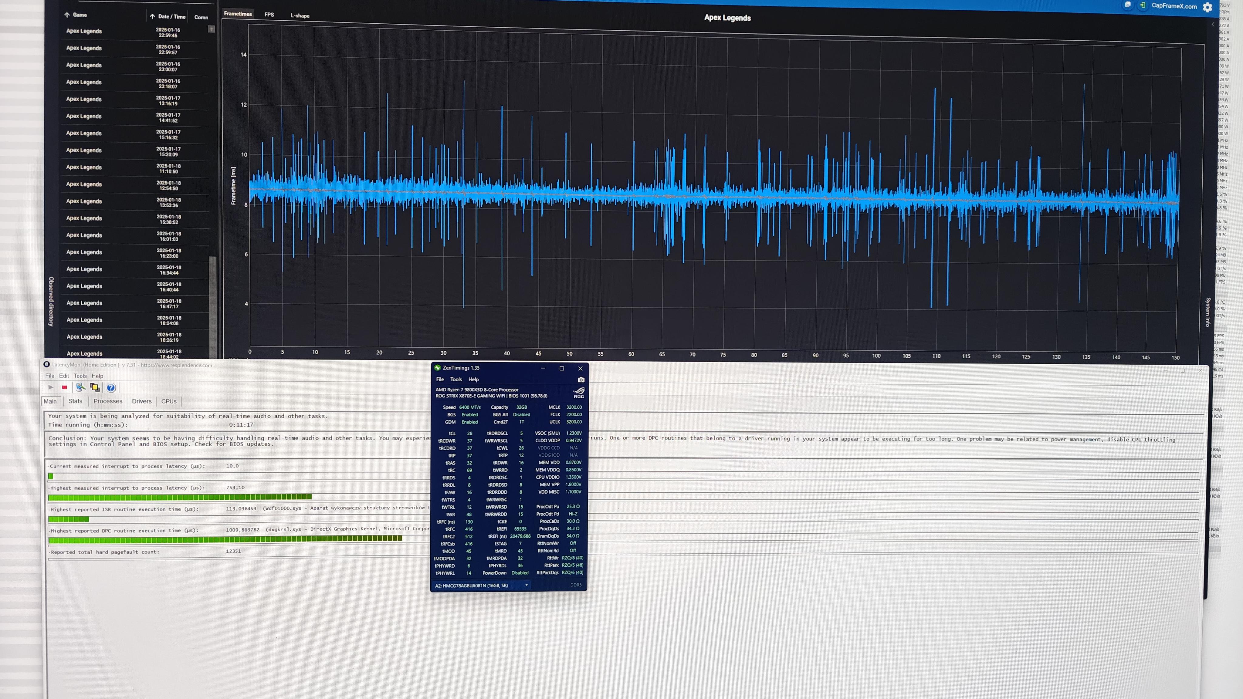 Wczoraj graliśmy z kumplami w ETS 2 i przez pierwsze 1,5 godziny super, a później znów zaczęło ścinać. Temperatury były ok. Dziś włączyłem tradycyjnie na testy WRC i stuttering. Reset kompa i znów płynnie co potwierdza capframex także według mnie problem sprzętowy można wykluczyć. Niestety nie znam żadnego programu, który mógłby wyhaczyć co w momencie ścięcia się uruchamia lub jaki sterownik crashuje.