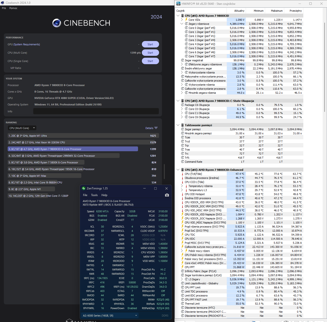 • Przeciez roznica miedzy 9700x a 9800xd to 75-100mhz   W grach roznica jest zadna miedzy odkreconym cpu, a limitem ppt 88W  To co najwyzej w cine bedziesz mial wiecej ptk i to tyle   Jakie napieice i vid podczs testu raportuje ?  Nie wiem jak bardzo by musiala byc spartolona gra zebys mial drop z 250 na 120 fps tak wiec wymyslac torche abstrakcyjne scenariusze  I to by byla tylko i wylacznie wina gry a nie slabego cpu. Jak widac na ciebie placebo dobrze dziala ale to najwazniejsze ze dziala   W codzie na skreconym ppt i prilu bez kaganca nie ma zadnej roznicy w testach  Wiem bo testowalem   Jak jakis wbity limit nie dziala tzn ze jest problem z plyta/bios. Ja nie mam problemu z limitami, co  wklepie tak jest wiec moze sprawdz inny bios lub czy faktycznie zapisujesz ustawienia. Pusc cb23 i pokaz ile wypluje ptk przy takim poborze, jestem ciekaw.