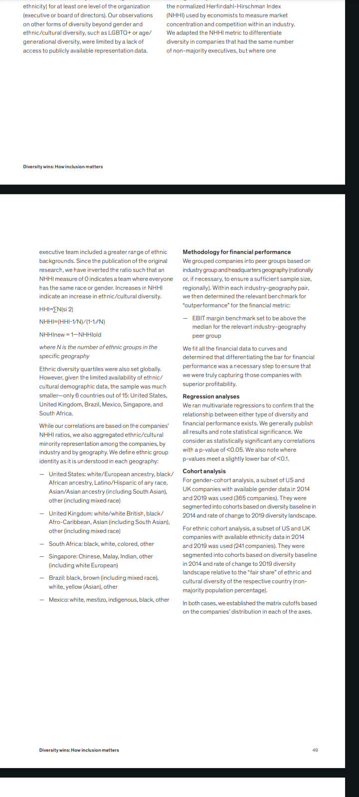 Obejmuje dane od 2014 roku dla 365 dużych firm z USA i Wielkiej Brytanii oraz dodatkowo przeprowadzono pogłębione wywiady z menedżerami, by zrozumieć ich podejście do różnorodności i inkluzywności.